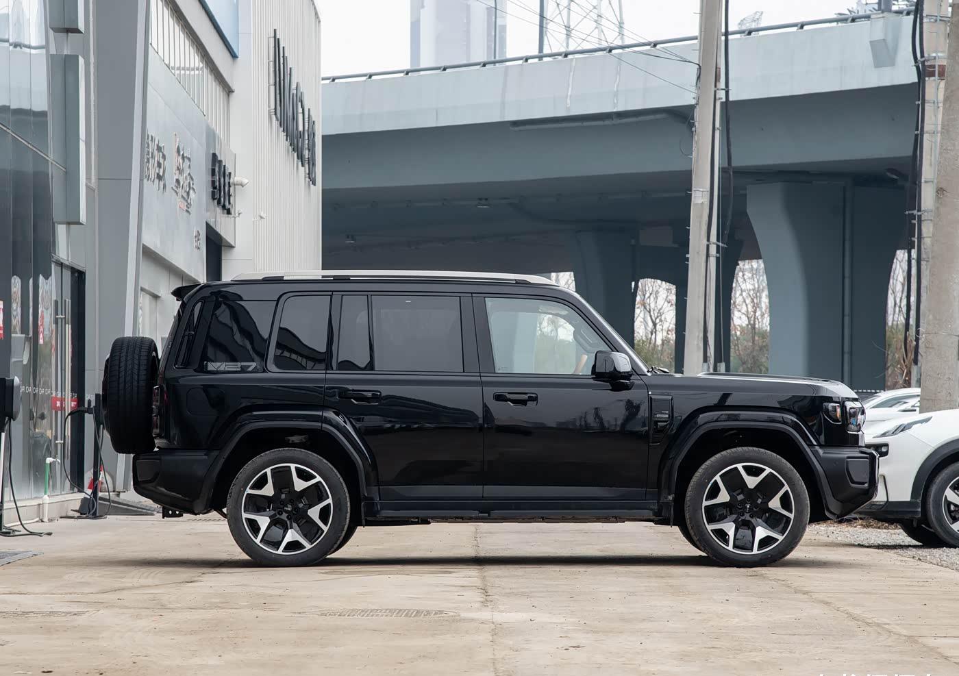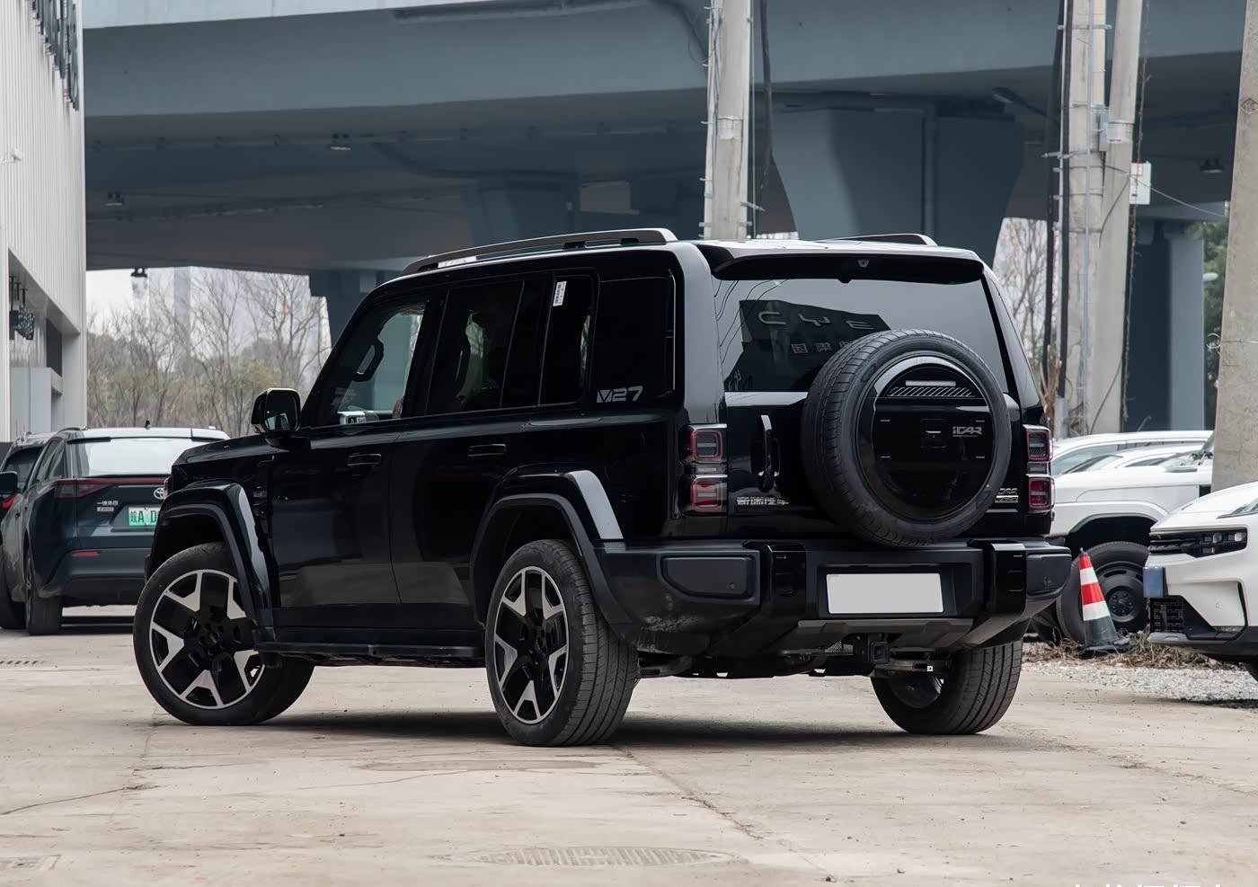 外观设计方面,iCAR V27整车的外观硬朗霸气,同时也不乏一定的时尚气息,想必这样的外观设计是比较能够符合当下大众主流审美的。车头部分,新车采用了方形大灯加外凸保险杠的设计,看起来复古且具有一定的“野性”。车身侧面,iCAR V27的设计比较简约,但粗壮的D柱外加“V27”的标识让整个车侧拥有了较高的辨识度。车尾部分,iCAR V27虽然不是越野车,但也依然采用了后挂备胎和侧开尾门这两个常出现在越野车上的设计,凸显了车尾的“越野感”。
