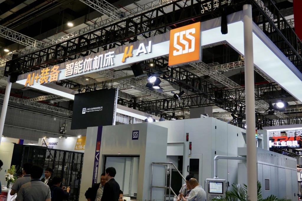 在交大智邦的展台,全球首台智能体机床 μ AI 正上演一场无人干预的精密“制造秀”。只见工作人员在操作屏上选定目标模型,并设定好刀具的角度、精度,机床便开始转动,刀具从一开始的“胡乱”切割逐渐形成有规律的路径。